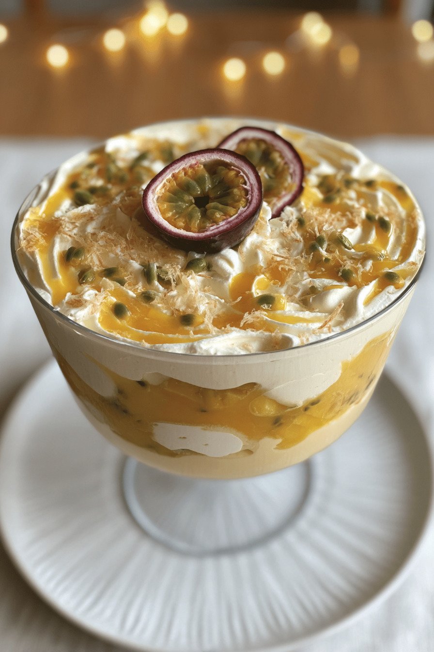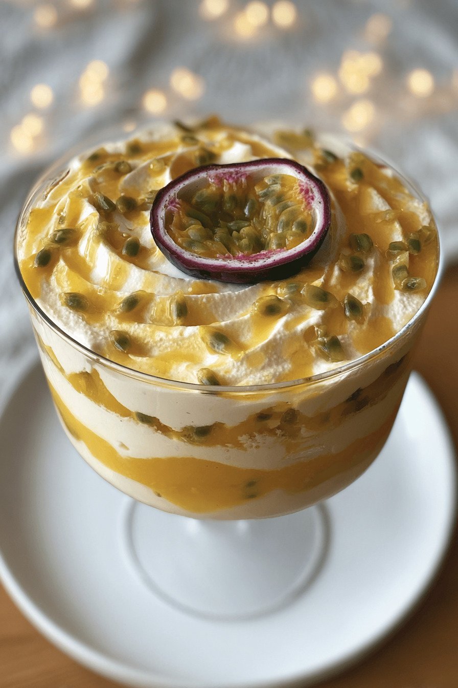 Passionfruit pulp The seeds add crunch. The pulp adds tang. The scent sits bright and clean. It hints at ideas from Asian Dessert Recipes and feels new in a classic trifle.