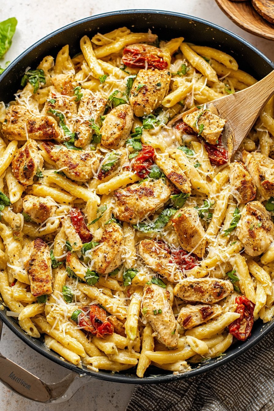 I make this on a busy night and the table goes quiet. Tender chicken meets warm pasta. Cream pools around each bite. Sun dried tomato gives a bright pop. We twirl and smile. The name feels bold yet the dish tastes kind and cozy. I call that a good sign. We use a skillet and a pot. We keep steps short. The sauce starts with garlic and cream. Parmesan melts smooth. The heat stays gentle so the sauce stays silky. Each step links to the next one. It all makes sense and moves fast. This fits great with our plan for Chicken Pasta Recipes. It also matches Boneless Chicken Breast Recipes, Baked Pasta Recipes, Alfredo Pasta Recipes, Baked Chicken Breast Recipes, Baked Chicken, and Cast Iron Skillet Recipes Dinner. The flavor sits rich but not heavy. We cook once and eat well. That feels like a small win we can count on.
