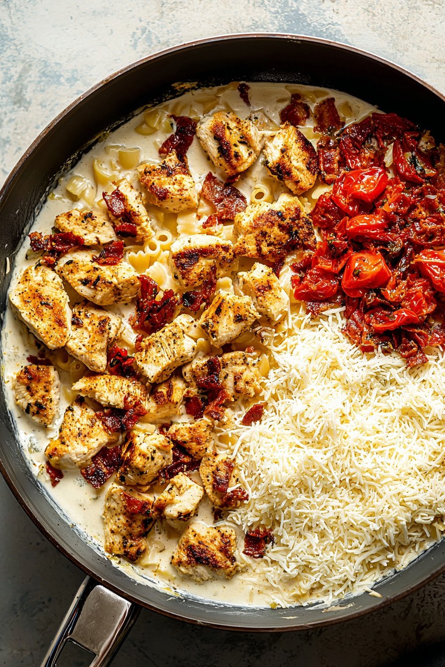 Keywords: Alfredo Pasta Recipes, baked chicken, baked chicken breast recipes, Baked Pasta Recipes, Boneless Chicken Breast Recipes, Cast Iron Skillet Recipes Dinner, Chicken Pasta Recipes, creamy chicken pasta, Sun Dried Tomato Pasta, weeknight dinner