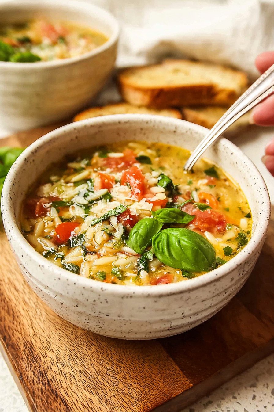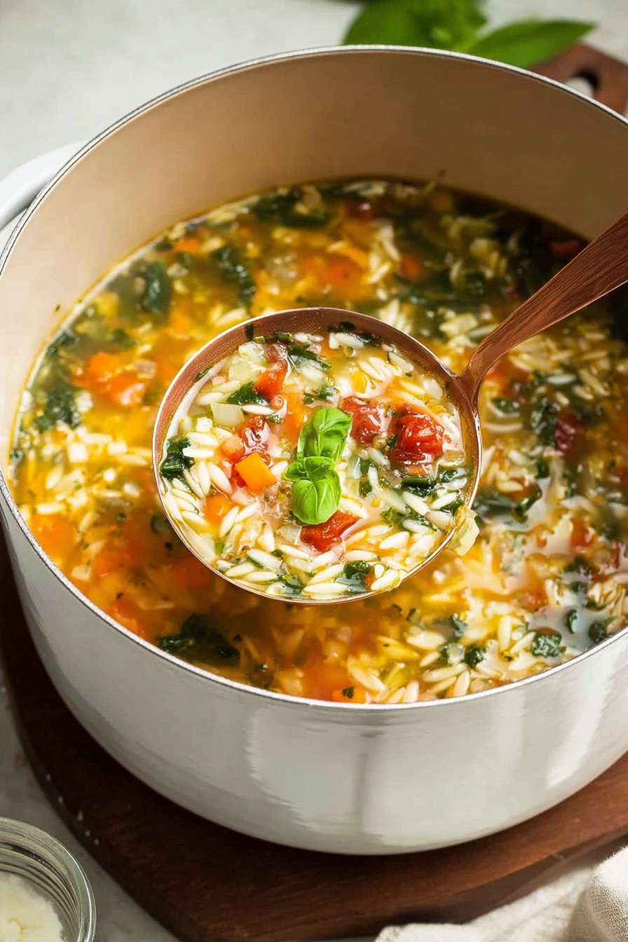 Vegetable broth and diced tomatoes The broth sets the tone. I pick low sodium so I control the final taste. The tomatoes bring body and a gentle tang. Together they build a base that lets orzo cook through without clumping. The color looks cheerful and the spoon moves easy.