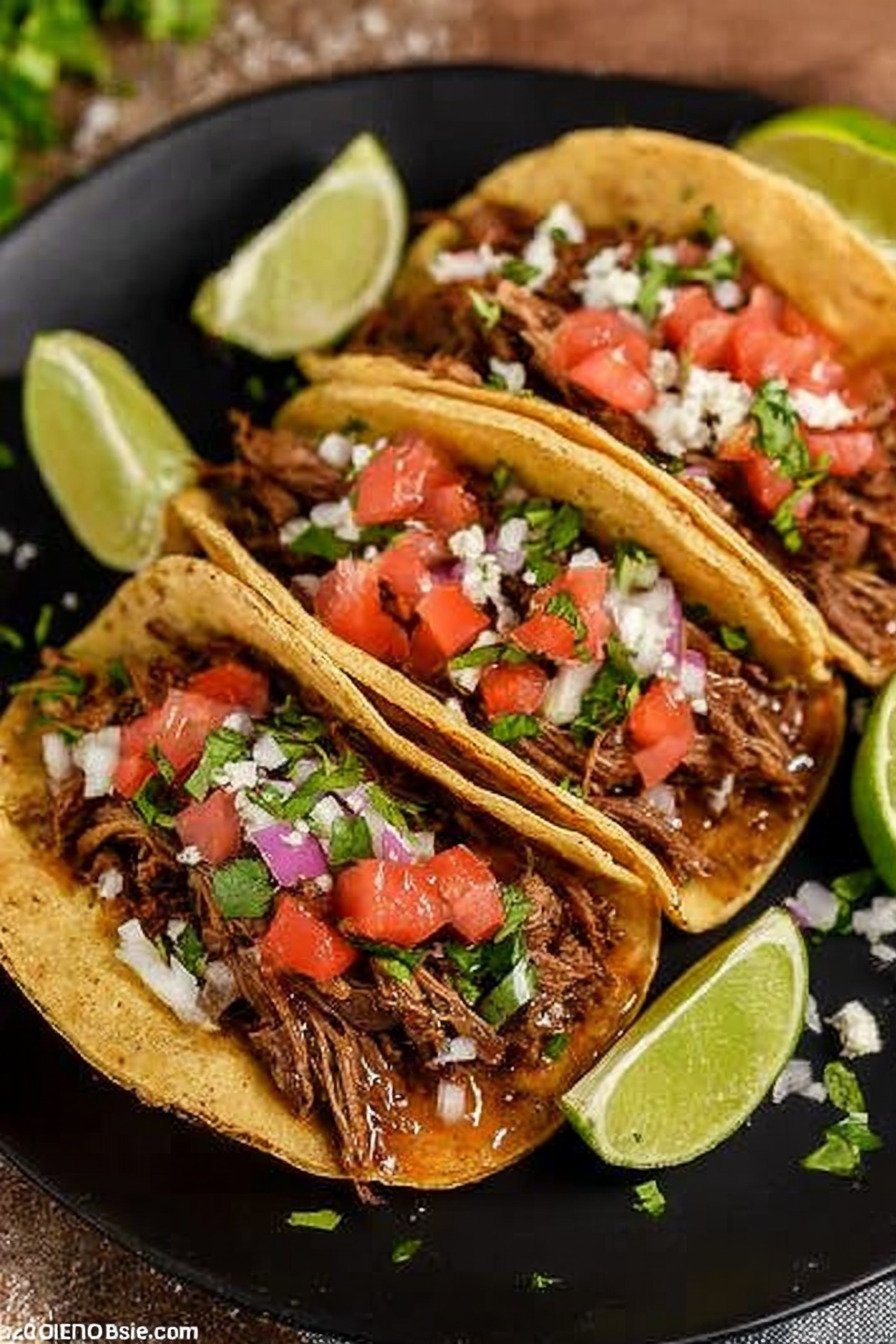 We load soft tortillas and pile on onion and cilantro. A squeeze of lime wakes the spice and the beef melts. The texture stays juicy. The edges pick up a hint of char if we crisp the meat in a hot pan. I like that little snap under the chew. It makes every bite feel balanced and bright.