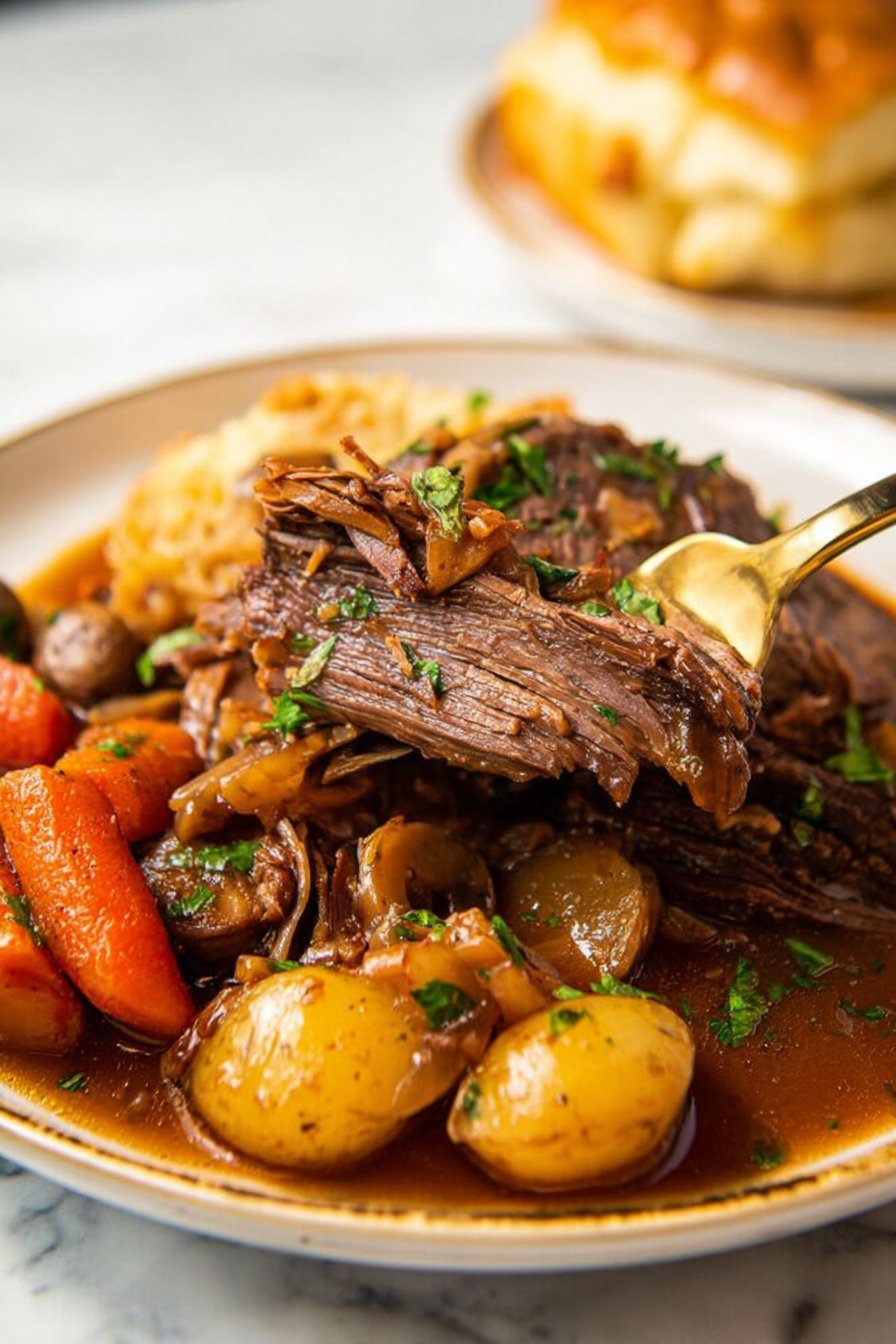 I cook the roast the day before guests arrive. The flavors settle and the sauce thickens by morning. Reheat on gentle heat with a small splash of broth so the meat stays juicy.