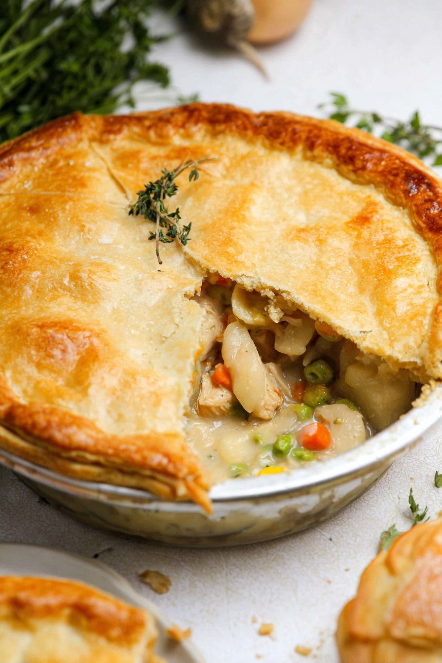 One Pot Chicken Pot Pie is my rainy night fix. I grab my cast iron, and we make dinner in one pan. The smell of butter, onion, and thyme hits fast, and my brain goes quiet. You know that feeling when the house turns cozy in ten minutes? This Chicken Pot Pie Recipe keeps things simple. We cook the filling first, then slide a sheet of puff pastry on top and bake. I once washed a pot pie dish at midnight. No thanks. It eats like the best of Comfort Food Recipes, yet it fits real life. One Pot Meals mean less sink drama, and I will take that win. Peas try to escape. We laugh. I grew up with Homemade Pie Recipes on Sundays. I loved the crackle of the crust and the soft center. This one brings that memory back, with carrots, peas, chicken, and a creamy sauce. A spoon breaks the crust and steam rushes out. I sneak a bite. I burn my tongue. It feels like Baked Casserole Recipes in pie form, warm and sturdy. If you own a skillet, try a Cast Iron Chicken Pot Pie. We scoop it right from the pan, and nobody waits for extra plating. I call that smart cooking.