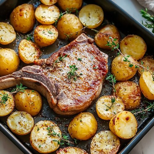 When I think of comfort food that doesn’t chain me to the stove for hours, pork chop recipes always come to mind. This sheet pan version is a lifesaver on busy nights when I’d rather spend time laughing with my family than scrubbing pots. Picture golden potatoes crisping up while thick, juicy chops sizzle beside them—it’s a whole meal, all in one pan. I’ve made plenty of fried pork chop recipes in my time, but when you toss everything onto a sheet pan, it feels like cheating in the best way. The smell that fills the kitchen takes me right back to my childhood, where a pork chop sandwich recipe was the highlight of the week. Quick pork chop recipes like this are my secret weapon when the day’s been long and my energy is running low. If you’ve ever wondered how to make pork loin chops recipes feel less intimidating or how to coax maximum flavor out of thick pork chop recipes without fuss, this is it. A little seasoning, a hot oven, and before you know it, you’ve got dinner ready to go. It’s honest, no-nonsense cooking that gets the job done—and the best part? There’s only one pan to wash.