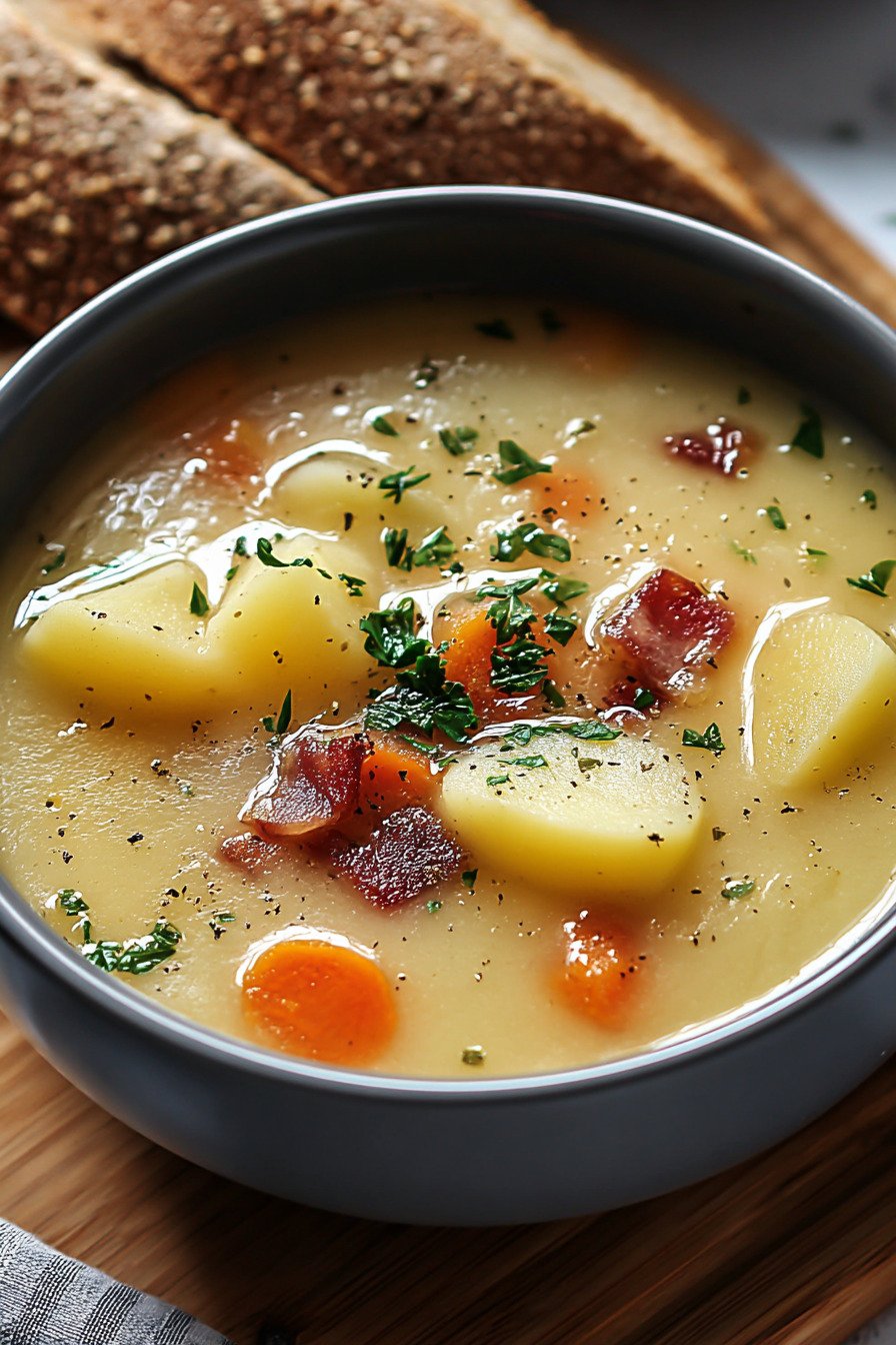 You get a creamy potato soup feel without heavy cream. A quick mash of cooked potatoes gives body. Bacon adds a quiet smoky edge or skip it for a clean veggie path. The broth stays light so each spoon tastes bright and warm.