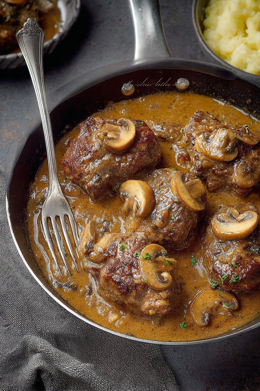 I grew up with this salisbury steak recipe on rainy nights. The pan stays hot, the onions turn sweet, and the gravy waits for a slice of bread to swipe the last stripe on the plate. I keep the patties soft with breadcrumbs and milk, then I brown them hard for a deep crust. We get tender beef, we get a rich mushroom gravy, and we get dinner that feels like a hug. I use a quick pan sauce so the meat stays juicy and the kitchen smells like a little diner. My kids call it burger with a tux. I call it my weeknight win. This version reads simple and cooks fast. It works for salisbury steak recipes. It works as an easy salisbury steak recipe. It slides into a salisbury steak casserole recipe if you want baked comfort later. The sauce fits a mushroom gravy recipe easy, a mushroom gravy recipe indian with warm spice, and a cream of mushroom gravy recipe when the pantry runs light.