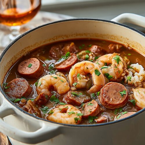 For lighter bowls use more okra and a smaller scoop of sausage. For higher protein add extra shrimp or a side of beans. Both choices keep flavor strong and the body happy after dinner.