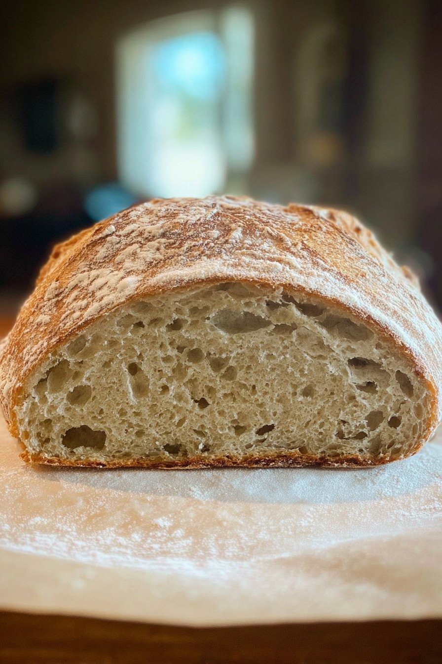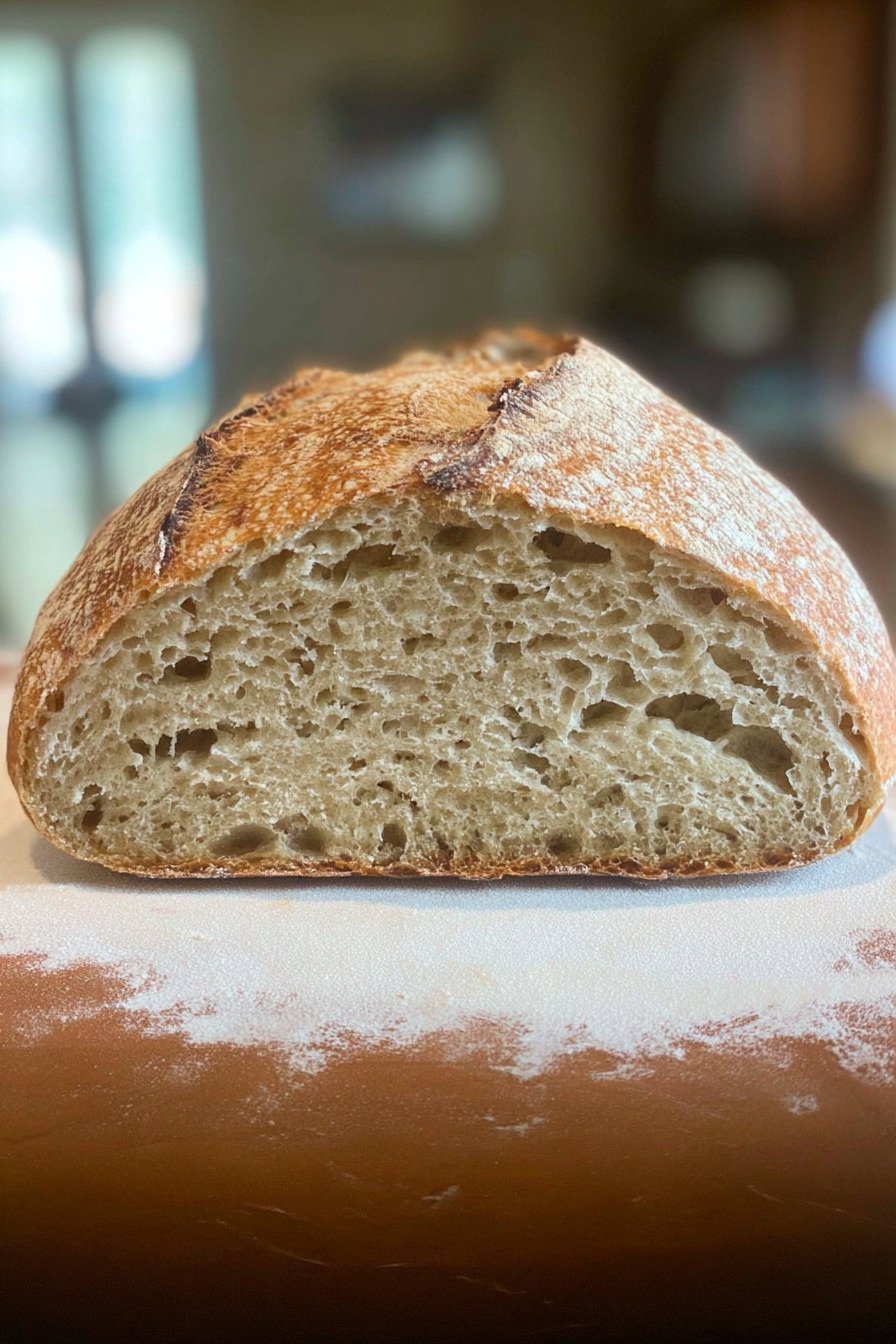 Leave the loaf cut side down on a board for one day. The crust stays crisp. The crumb stays tender. For longer storage wrap in a clean towel. Air keeps texture better than sealed plastic for short terms.