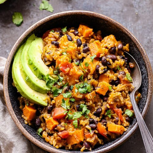 9 Southwest Sweet Potato Black Bean and Rice Skillet