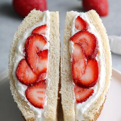 When I think about quick breakfast ideas, my mind goes straight to this strawberry sando. Two slices of soft bread, a layer of whipped cream, and bright strawberries create a treat that feels light but satisfying. I make this when mornings feel rushed yet I want something that looks like I actually tried.