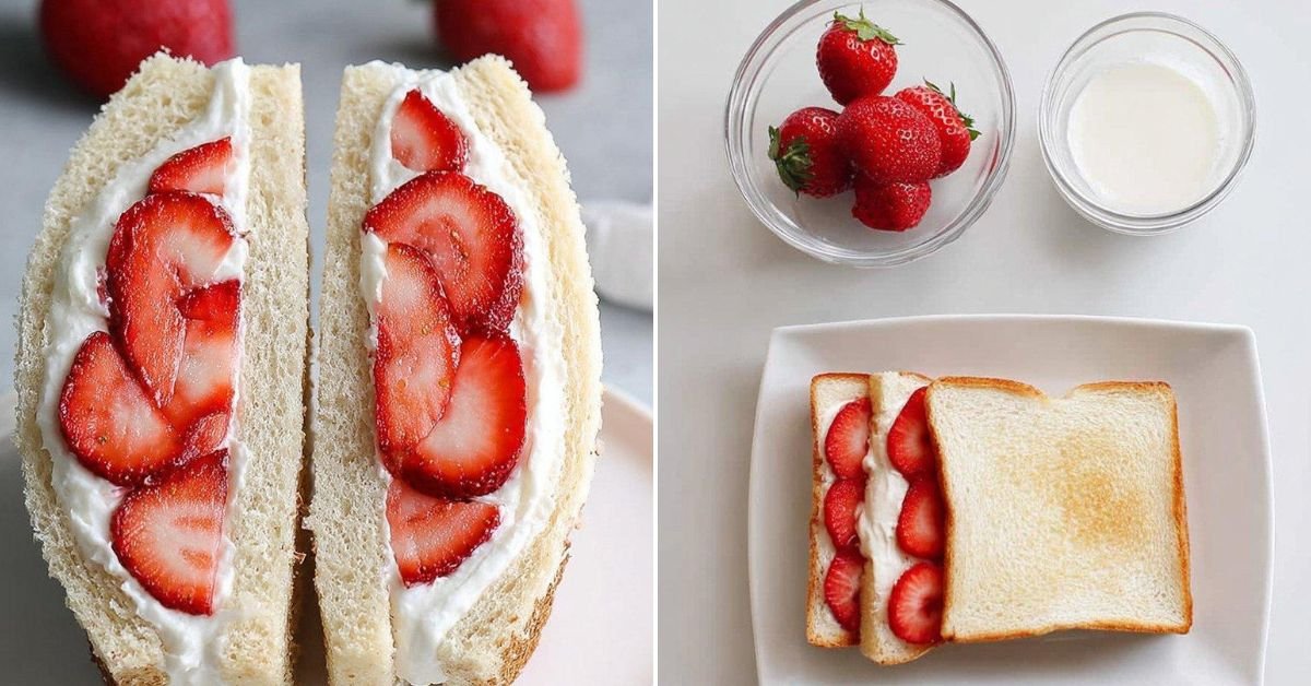 When I think about quick breakfast ideas, my mind goes straight to this strawberry sando. Two slices of soft bread, a layer of whipped cream, and bright strawberries create a treat that feels light but satisfying. I make this when mornings feel rushed yet I want something that looks like I actually tried.