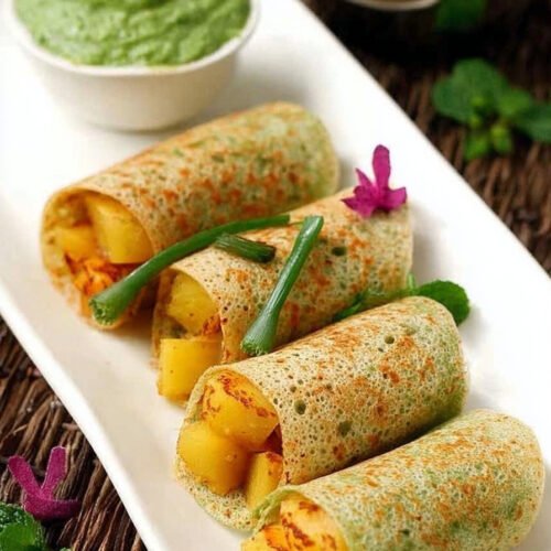 If I’m throwing together a tray for a healthy finger foods party, I’ll cook the dosas and store them flat, then fill and fold them later. It keeps the texture right and avoids sogginess.