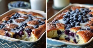 Blueberry Breakfast Casserole with Buttermilk Pancake Batter