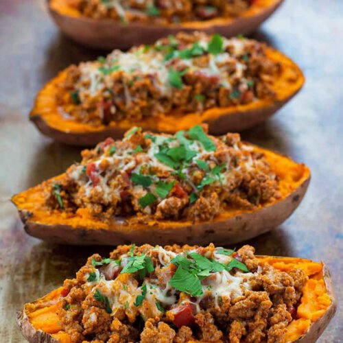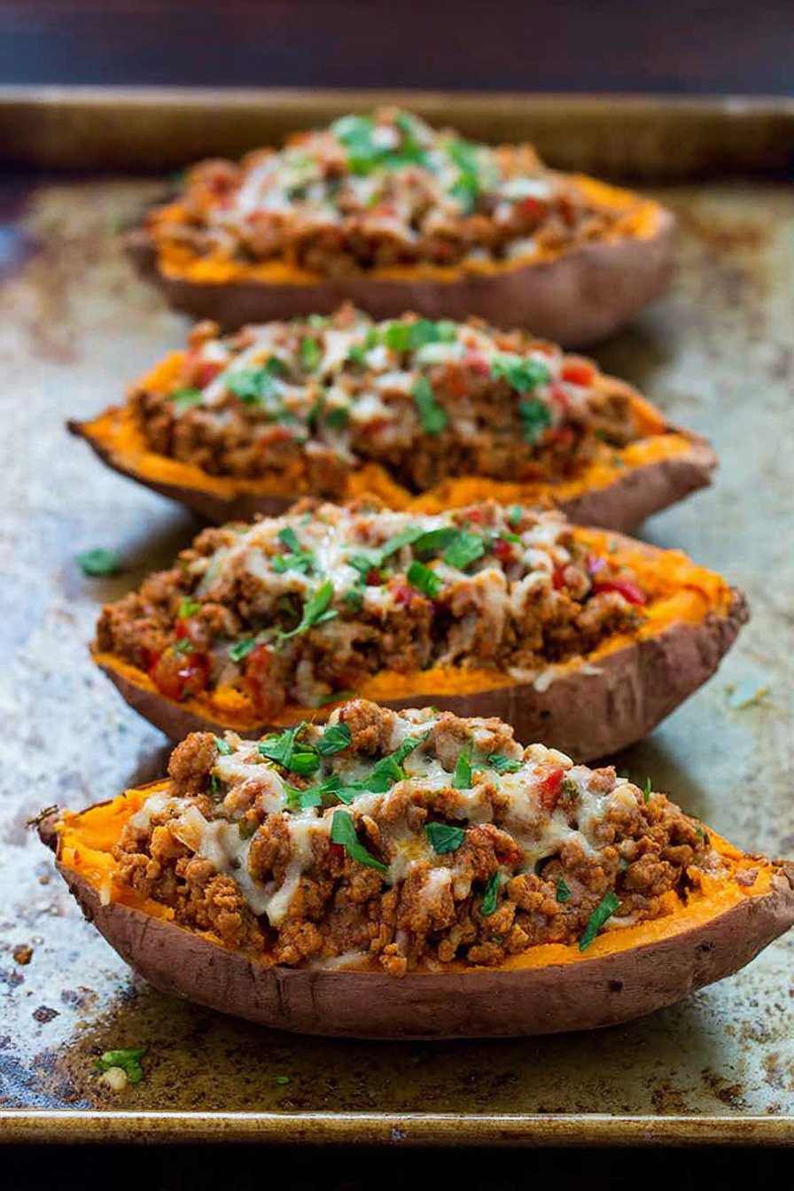- Turkey Taco Stuffed Sweet Potatoes